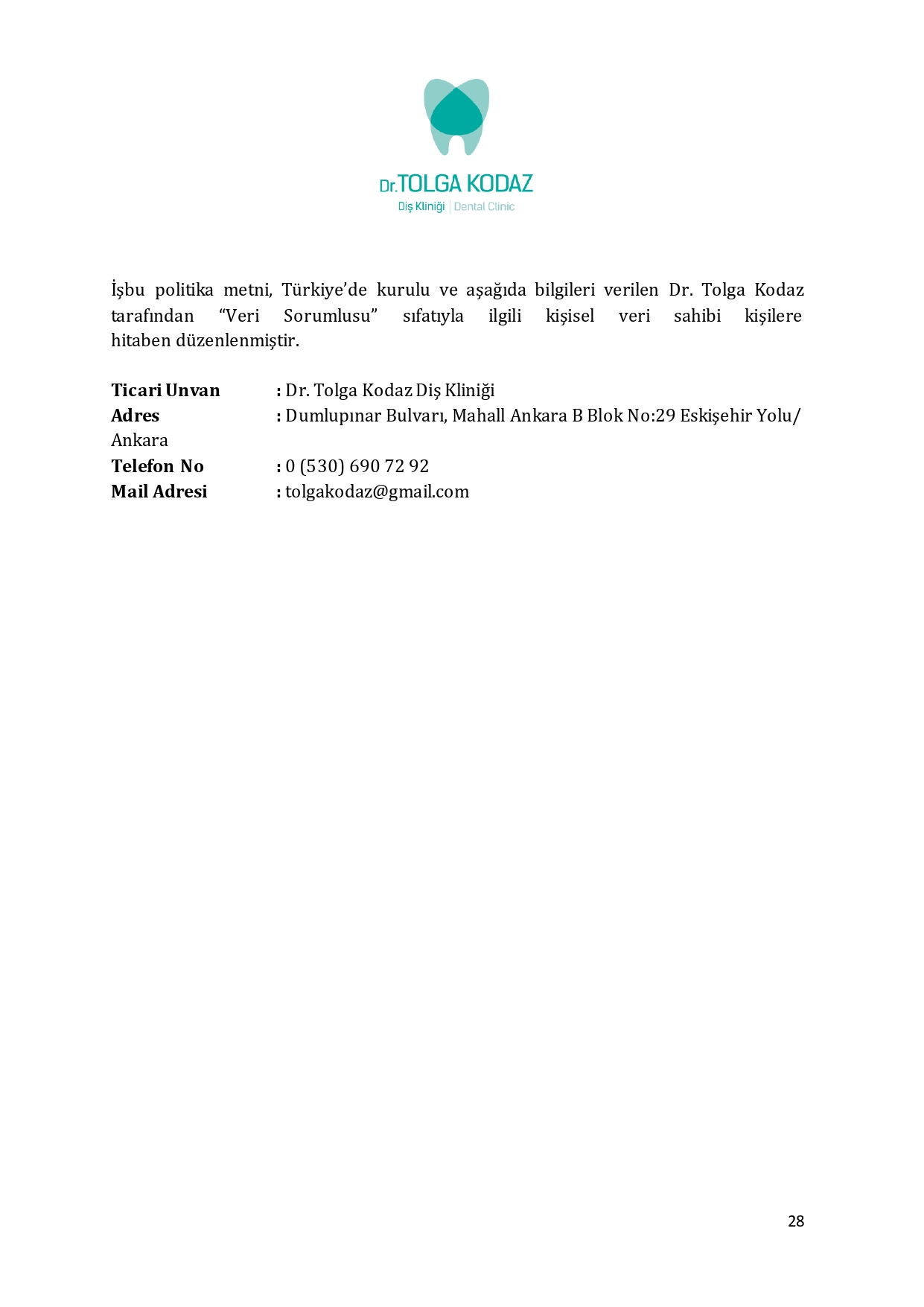 İLETİŞİMDr. Dt. Tolga Kodaz, Gazi Üniversitesi Diş Hekimliği Fakültesi Ağız, Diş ve Çene Cerrahisi Anabilim Dalı'nda araştırma görevlisi ve akabinde öğretim görevlisi görevlerinde bulunduktan sonra Mahall Ankara'da bulunan özel kliniğinde hastalarını kabul etmektedir.